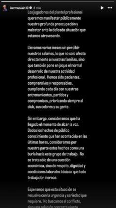 Iker Muniain, figura del equipo, publicó un fuerte mensaje en Instagram, manifestando el descontento del plantel: «Hemos decidido alzar la voz. Estos hechos son una burla hacia nuestro grupo de trabajo. No es solo una cuestión económica, sino de respeto y dignidad laboral que todos merecemos». También expresó su preocupación y malestar por la situación, pidiendo una resolución rápida y justa.