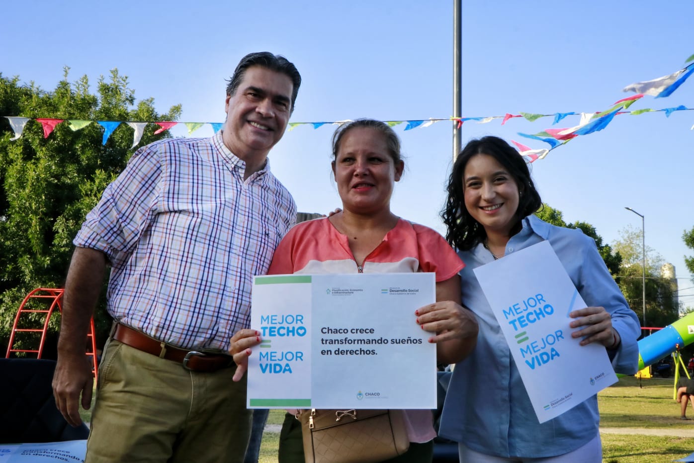 “Mejor Techo, Mejor vida alcanza a 1.300 soluciones habitacionales que arrancaron con un aporte de 300 mil pesos que hoy asciende a 3 millones de pesos”, detalló Capitanich, quien estuvo acompañado por la vicegobernadora, Analía Rach Quiroga, y la ministra de Desarrollo Social, María Pía Chiacchio Cavana.