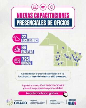 Las personas interesadas pueden consultar la oferta disponible en cada establecimiento ingresando al sitio oficial del programa Impulsar Chaco, en la sección “Capacitaciones”, donde figura el listado completo de cursos por localidad.