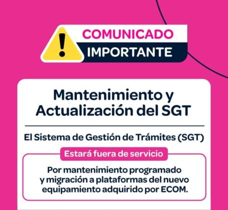 Ecom Chaco informó que el Sistema de Gestión de Trámites (SGT) permanecerá fuera de servicio debido a un mantenimiento programado y a la migración a nuevas plataformas, un proceso orientado a mejorar la calidad del servicio.