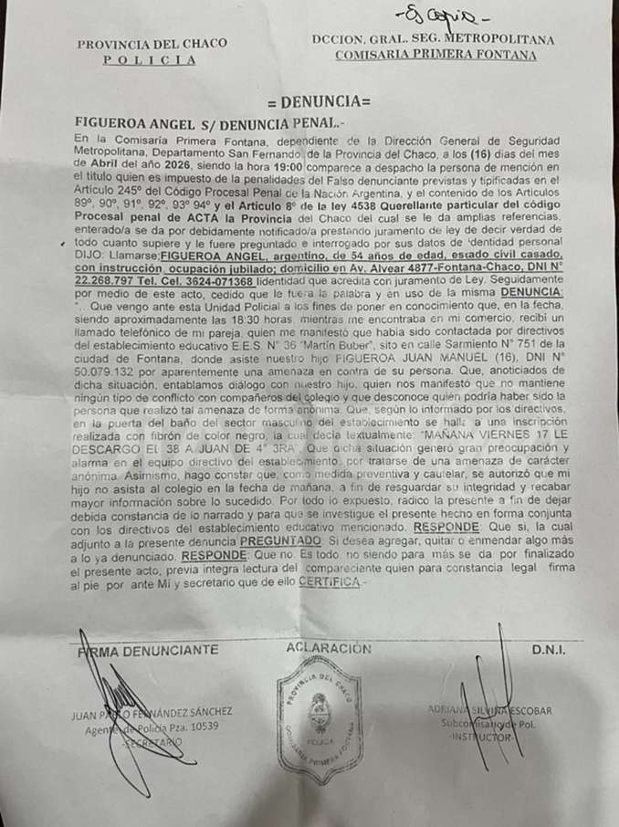 El episodio vuelve a poner en el centro del debate la necesidad de fortalecer los equipos de orientación escolar y los dispositivos de seguridad y convivencia dentro de las instituciones de Fontana, una zona que ya ha sido escenario de otros hechos de violencia juvenil.