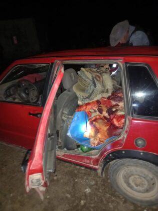 En el interior del vehículo se encontraron: 250 kg de carne bovina: menudencias, corazón, costillar, lengua, riñón, cebo, mondongo, pulpa, cuartos, espinazo y pecho.