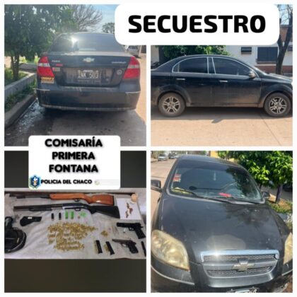 En el domicilio y en el automóvil, los agentes hallaron un importante arsenal: una pistola calibre 22, una escopeta 12/70, cargadores, más de 360 cartuchos calibre 22, municiones de otros calibres, vainas servidas y un Chevrolet Aveo negro. También se secuestraron armas de aire comprimido, entre ellas una réplica de pistola 9 mm.
