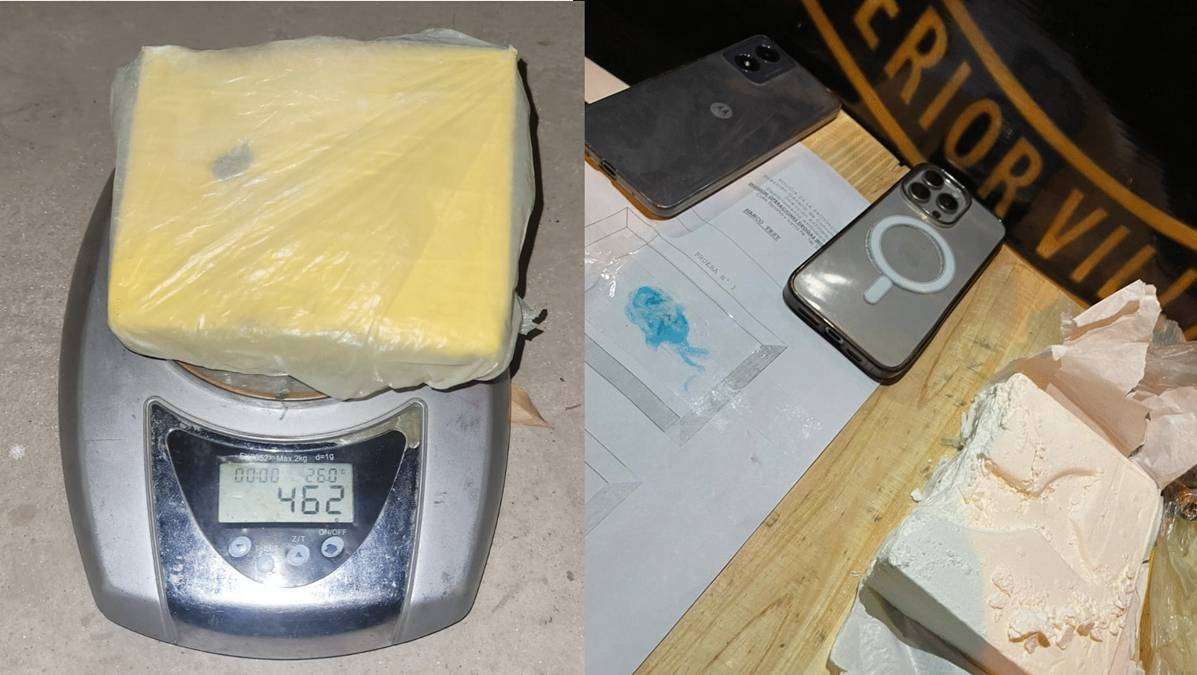Una vez reducidos, uno de los hombres, de 33 años, confesó que transportaba un “ladrillo” de cocaína en la guantera del automóvil, lo que motivó el intento de fuga. En total, la sustancia incautada alcanzó un peso de 462 gramos.