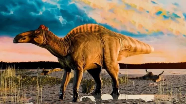 Este dinosaurio podía superar los 12 metros de longitud y se desplazaba tanto en cuatro patas como en dos. Su pico sin dientes le permitía recolectar vegetación baja y blanda, alimentándose en manadas en las llanuras de América del Norte.