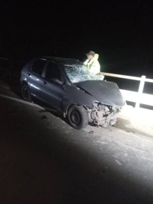 Un grave accidente de tránsito ocurrió la madrugada del viernes en la Ruta Nacional 14, en la zona de Cuay Chico, Santo Tomé. Un camión cargado con soja colisionó con un automóvil Fiat Palio y cayó desde un puente al arroyo.