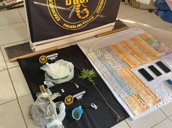 Hoy, alrededor de las 18:25, los agentes realizaron procedimientos en dos domicilios ubicados en distintos puntos de la ciudad. En el primero de ellos, situado en la zona de calles Nicaragua y Pública, lograron secuestrar diversos elementos vinculados a la venta y distribución de drogas, entre ellos: Más de 700 gramos de cocaína en distintos formatos, envoltorios con marihuana y semillas, una balanza digital utilizada para fraccionamiento, tres teléfonos celulares de distintas marcas, una planta de cannabis y hojas secas, dinero en efectivo. Recortes de nylon comúnmente usados para el armado de “bochitas”. En ese lugar también fueron demoradas dos personas.