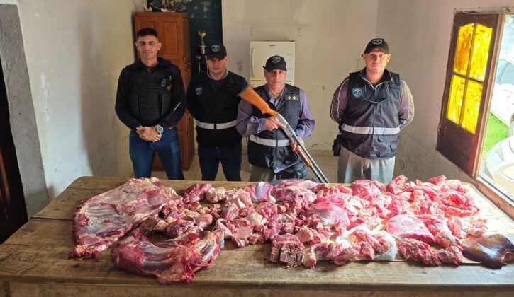 Por disposición del Juzgado de Paz, se procedió al secuestro de la carne y se notificó a los ocupantes del rodado por una supuesta infracción al artículo 45 del Código de Faltas, que sanciona la faena clandestina.