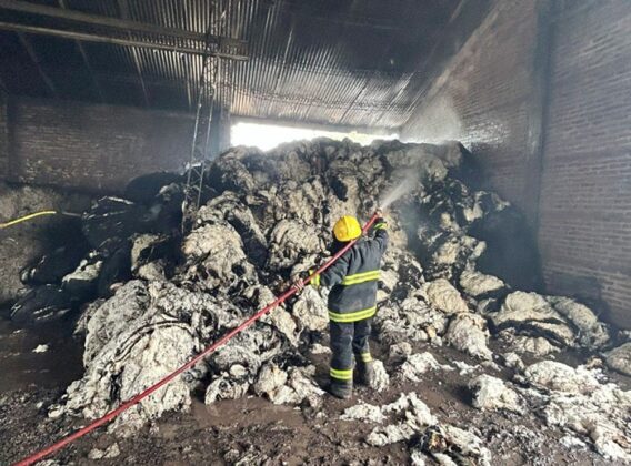 Según las primeras informaciones, el fuego se originó en un depósito donde se almacenaban fardos de algodón y maquinaria agrícola, materiales de alta combustibilidad que facilitaron la rápida propagación de las llamas.