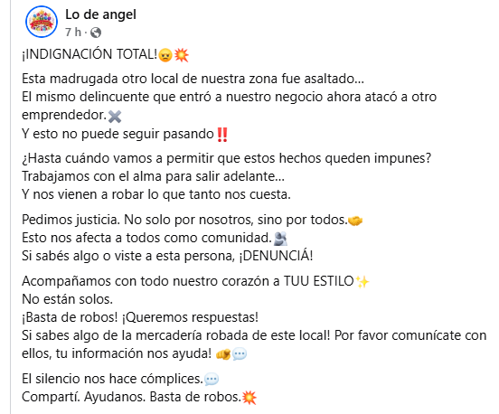 A través de redes sociales, los vecinos han compartido el pedido de información sobre la mercadería robada y se han sumado a la solicitud de justicia.