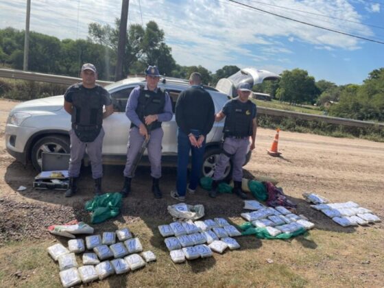 Un hombre de 42 años fue detenido esta mañana tras ser interceptado en el Puente San Pedro, mientras transportaba 60 panes de marihuana en el asiento trasero de una Chevrolet Tracker.