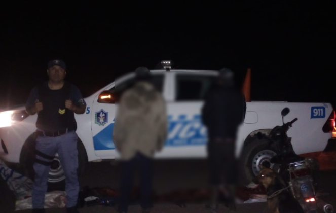 Ayer, cerca de las 22:30, efectos la comisaria Basail, realizaban tareas de prevención por la zona rural de Bajo Méndez, donde interceptaron el paso de dos motocicletas 110 cilindradas, guiadas por un joven de 23 y un hombre de 39 años, ambos trasportaban bolsas de arpillera con producto cárnico en su interior.