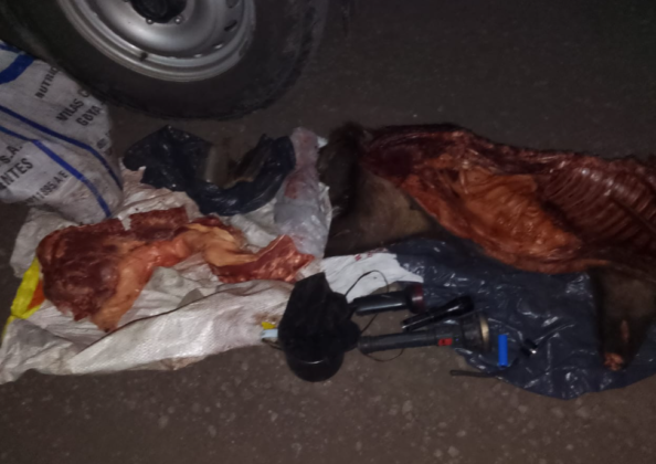 Seguidamente, al verificar el interior de las bolsas de arpillera constataron un carpincho y un chancho salvaje faenados. También, incautaron tres linternas.