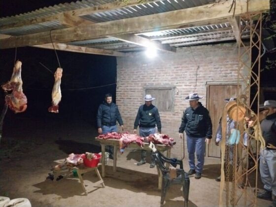 Durante el operativo, los agentes siguieron los rastros hasta una vivienda precaria en un campo lindante, donde sorprendieron a un hombre faenando un animal vacuno. Al identificarse, el sospechoso, reconocido como B.G., huyó hacia una zona boscosa.