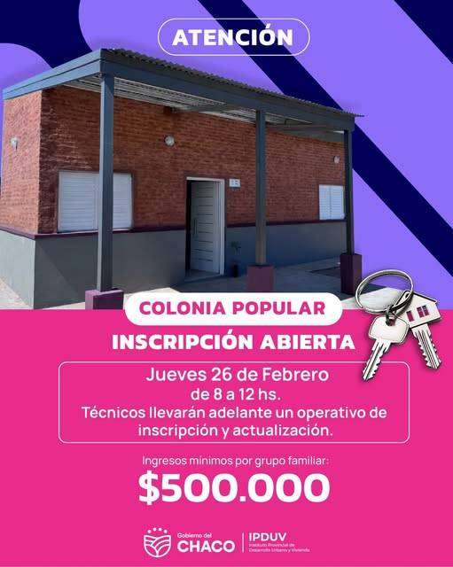 El Instituto Provincial de Desarrollo Urbano y Vivienda (IPDUV) llevará adelante un operativo de inscripción y actualización de datos en Colonia Popular.