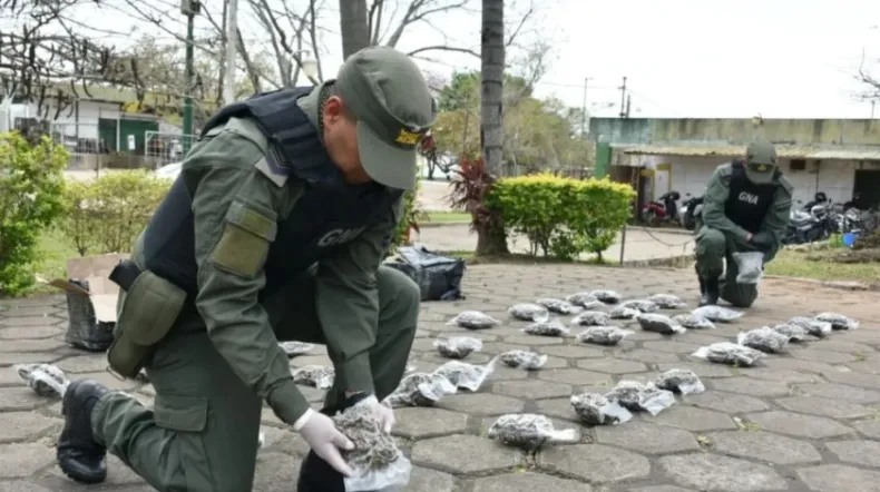 El operativo fue realizado por efectivos del Escuadrón 47, quienes, con el apoyo del can detector de narcóticos Roque, detectaron los bultos sospechosos. Al abrirlos, en presencia de testigos, hallaron 40 paquetes envasados al vacío con cogollos de cannabis.
