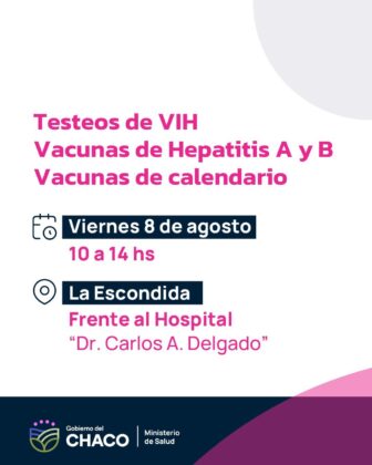 Este viernes 8 de agosto, de 10 a 14 horas, el Ministerio de Salud llevará a cabo una jornada especial de prevención en las inmediaciones del Hospital “Dr. Carlos A. Delgado” de La Escondida.