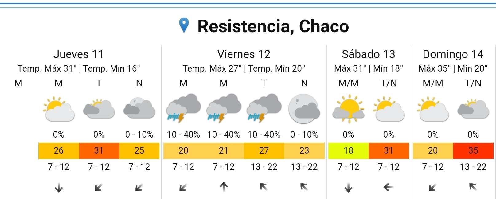 Este jueves, Resistencia amaneció con un cielo mayormente nublado y temperaturas que oscilarán entre los 16 °C de mínima y los 31 °C de máxima. Sin embargo, el tiempo podría modificarse mañana.