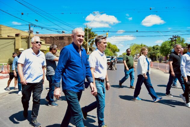 El gobernador Leandro Zdero, junto al intendente de Resistencia, Roy Nikisch, y al subadministrador de Vialidad Provincial, Gustavo De Martini constataron, este sábado, las obras de pavimentación y mejoramiento integral de la avenida 9 de Julio, que se encuentra en su etapa final.*