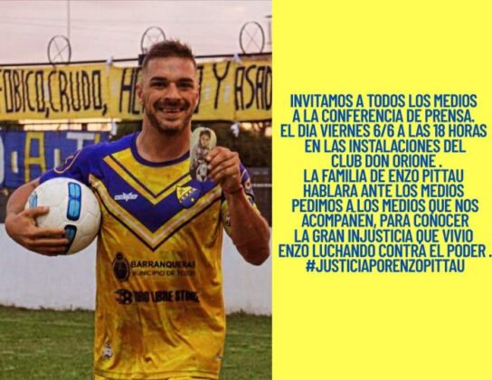 Este viernes, desde las 18 horas, la familia del futbolista fallecido Enzo Pittau ofrecerá una conferencia de prensa, donde darán a conocer sobre la situación judicial por la que atravesaba Pittau, que no le permitía ver a su hija desde el 2018.