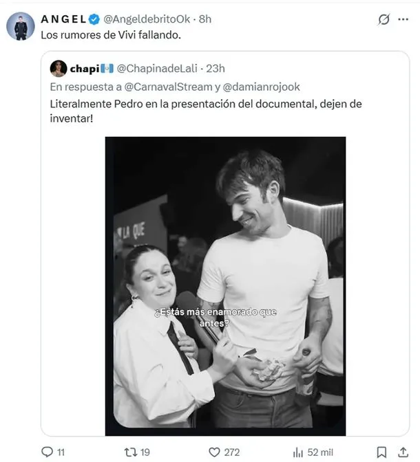 Minutos después, la discusión se trasladó a X, donde Ángel de Brito posteó una imagen de Rosemblat efectivamente participando del evento, contradiciendo lo dicho por Rojo. Junto a la foto escribió: «Los rumores de Vivi fallando».