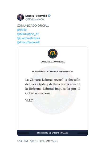 El expediente seguirá su curso en la Cámara, que deberá analizar los argumentos de fondo presentados por las partes. No se descarta que el caso llegue a instancias superiores, incluida la Corte Suprema, en medio de una disputa clave sobre el futuro del régimen laboral en el país.