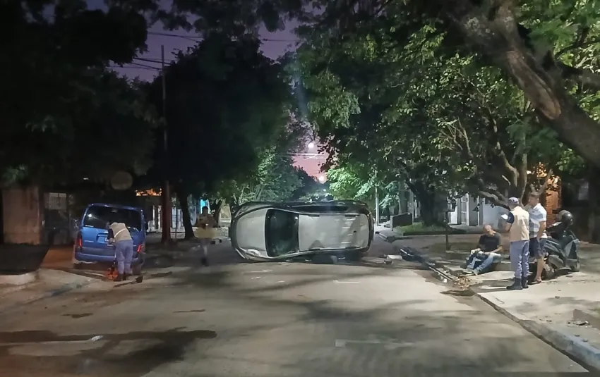 Mañana accidentada en Resistencia: una mujer quedó atrapada en su vehículo tras chocar y volcar