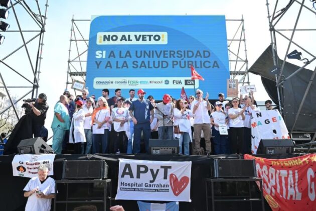 La protesta se inició el martes por la noche con un apagón educativo en distintas instituciones. A la movilización universitaria se sumaron también trabajadores del Hospital Garrahan, que realizaron un paro y leyeron un documento en defensa de la salud pública y contra el veto a la ley de emergencia pediátrica.
