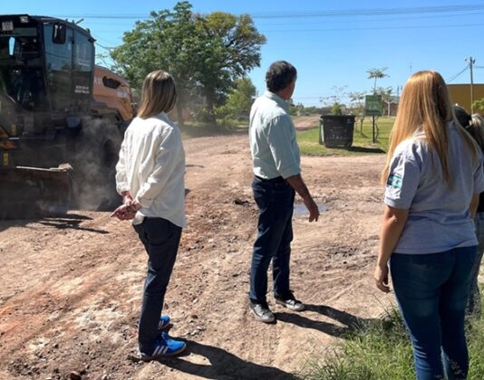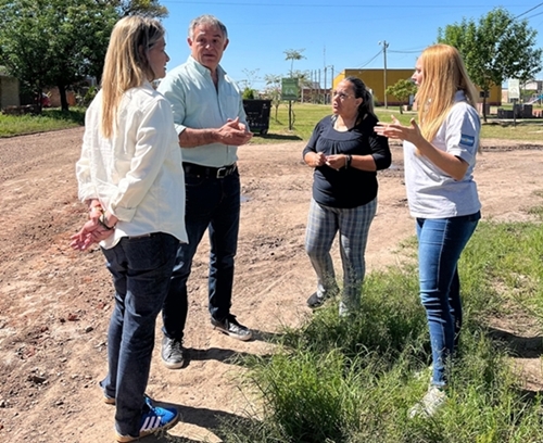 La secretaria general de la Gobernación, Carolina Meiriño, estuvo este jueves el lugar donde se ejecutan obras de accesibilidad, cuneteo y desagües para mejorar el escurrimiento del agua y garantizar el ingreso a las viviendas. “Recibimos los requerimientos de los vecinos a través de redes y diferentes medios. Hicimos una reunión el lunes, donde nos manifestaron como cuestión primaria la accesibilidad”, explicó Meiriño, quien estuvo acompañada por el secretario de Obras del Municipio, Javier Mattina, y el subadministrador de la Dirección de Vialidad Provincial, Eduardo Di Martini.