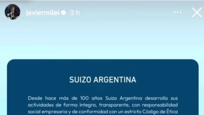 Según supo Noticias Argentinas, el mandatario utilizó su cuenta personal de Instagram para difundir el descargo de la firma, en el que aseguran que desarrollaron sus actividades «de forma íntegra, transparente, con responsabilidad social empresaria y de conformidad con un estricto Código de Ética».