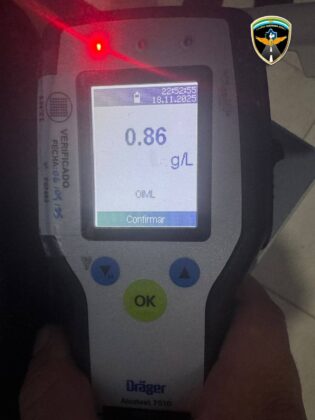 El hombre, de 43 años, fue sometido al test de alcoholemia, que arrojó resultado positivo con el valor 0.86 gl. Fue notificado de su situación legal y puesto ante la Justicia.