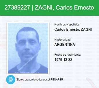 La muestra fue cargada en el sistema SIGEBI, base de datos local, que arrojó un resultado positivo. La persona fue identificada como Carlos Ernesto Zagni, de 46 años, alias “Flaco”, con domicilio registrado en la ciudad de Corrientes, y con antecedentes de identificación ante la fuerza policial.