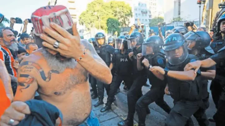 El Ministerio de Seguridad de la Nación intenta aplicar el protocolo antipiquetes y pasadas las 16 se vivieron los primeros choques. El primer enfrentamiento entre grupos y efectivos policiales se dio sobre la calle Rivadavia, metros antes de la intersección con Entre Ríos, sobre el frente del edificio del Congreso.