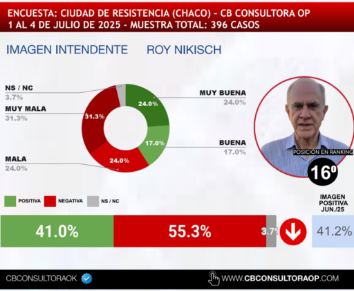 Nikisch se ubica 16º en el ranking de intendentes, con 55% de imagen negativa