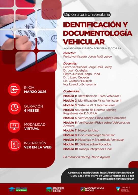 Nueva propuesta académica de UNCAUS: dictará una diplomatura en documentología vehicular