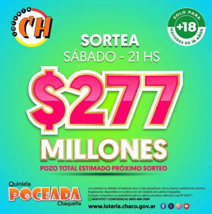 Nuevo pozo histórico en la Poceada Chaqueña: este sábado se sortea $277 millones