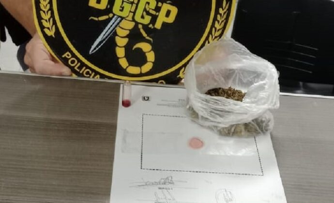 Durante la revisión de los objetos, los efectivos hallaron dentro del termolar un celular y una bolsa de nylon con una sustancia vegetal. Tras intervenir personal de la División Operaciones Drogas Peligrosas Interior Sáenz Peña, se determinó mediante prueba de campo que se trataba de 24 gramos de marihuana (Cannabis Sativa).
