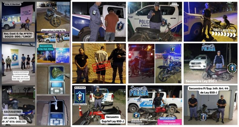 El operativo de “Patrullaje Motorizado Lince” finalizó con múltiples intervenciones en distintas localidades del interior provincial durante la noche del miércoles y la madrugada del jueves. El despliegue incluyó acciones en Sáenz Peña, Villa Ángela, Charata, San Martín, Castelli y otras ciudades, donde se llevaron a cabo controles de motovehículos, identificación de personas y tareas preventivas en zonas urbanas.