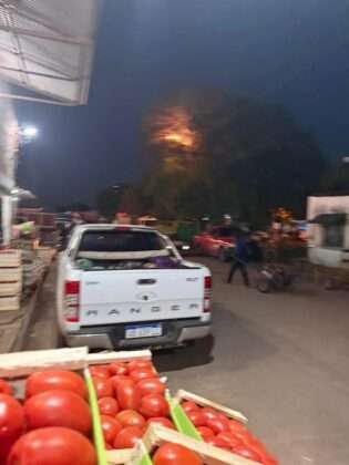 Corrientes: Cables de alta tensión provocaron un incendio en un árbol del Mercado de Concentración