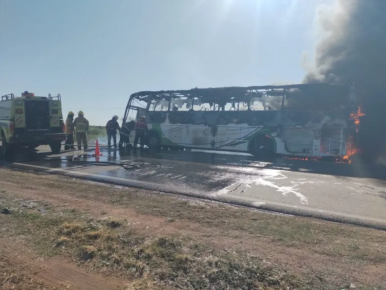 Un colectivo de la empresa El Bambi, que viajaba desde Sáenz Peña hacia General Pinedo, se incendió este martes por la tarde en la Ruta Nacional 89 debido a un desperfecto eléctrico.