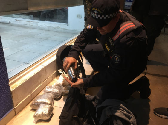 Ayer, a eso de las 19:00 horas, durante la inspección, el can «Aquiles» del Departamento Canes indicó interés sobre dos mochilas y un termo metálico pertenecientes a dos pasajeros. En presencia de testigos, se procedió a la apertura de los elementos. Una mochila negra, propiedad de un hombre de 31 años. También, otra mochila y un termo metálico, pertenecientes a otra persona de 28 años.