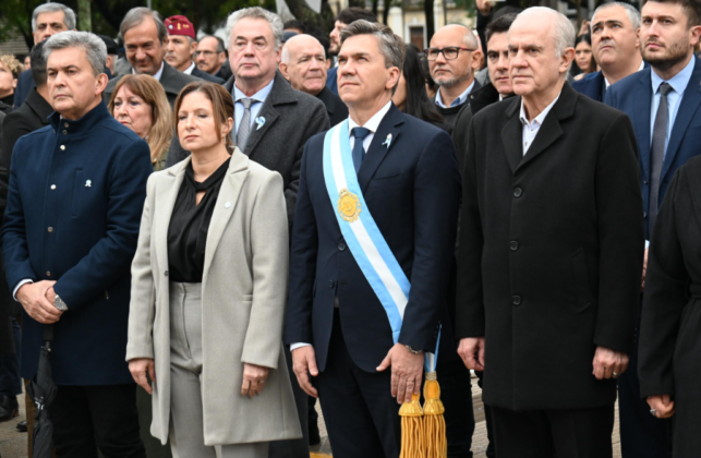 El gobernador Leandro Zdero junto al intendente Roy Nikisch encabezaron, este viernes, el acto por el Día de la Bandera nacional en homenaje a su creador Manuel Belgrano, en el Mástil Mayor de Resistencia. Debido a las inclemencias del tiempo y con el objetivo de cuidar la salud de los alumnos que iban a realizar la Promesa de Lealtad, el Ministerio de Educación, resolvió reprogramarla para el martes 24 de junio, en el Domo del Centenario.
