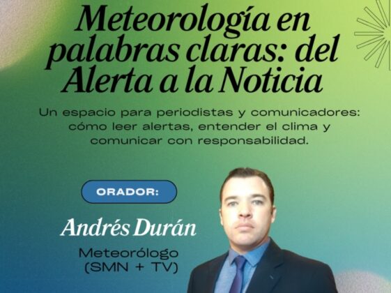 El evento será liderado por Andrés Durán, un meteorólogo con más de 12 años de experiencia en el Servicio Meteorológico Nacional y 7 años dedicados a la divulgación en medios. Esta actividad, sin costo y con certificación, tiene como propósito fortalecer las herramientas de los comunicadores para tratar con claridad, precisión y responsabilidad los fenómenos meteorológicos, sus alertas y su repercusión en la sociedad.