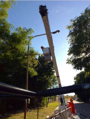 La Secretaria de Obras y Servicios Publicos. está llevando a cabo la reposición de luminarias en diversas zonas de la ciudad portuaria. Las tareas incluyen la instalación de nuevas luces en los barrios: