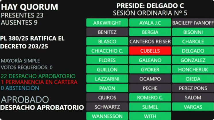 En contraposición, la diputada Tere Cubells, del Frente Grande, votó en disidencia. Argumentó que “la prórroga por decreto es ilegal” y que su bloque no acompañaría una iniciativa que considera inconstitucional.