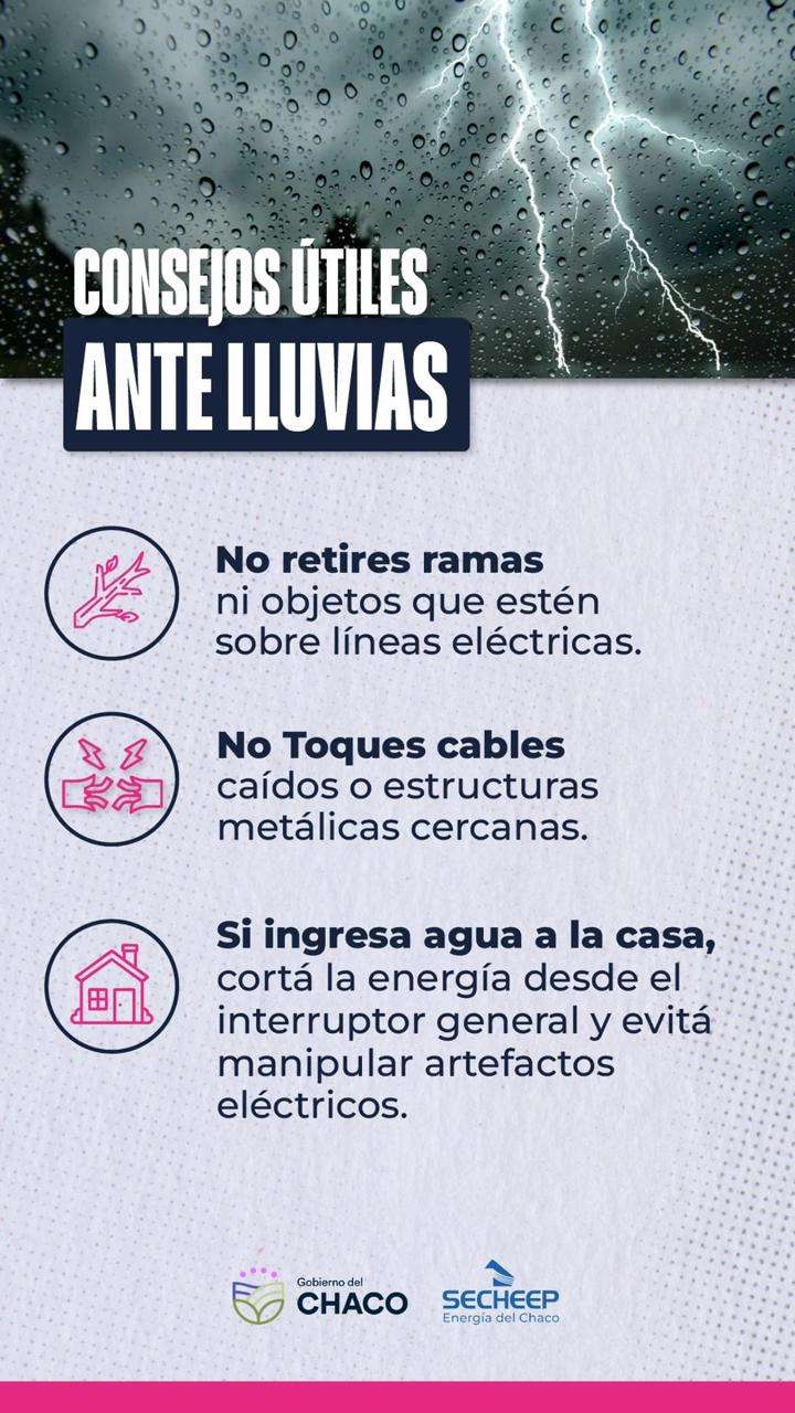 Ante las precipitaciones registradas en la provincia, se recuerda a la comunidad la importancia de adoptar medidas de prevención para evitar riesgos eléctricos en el hogar y en la vía pública.