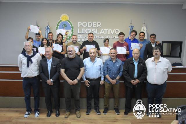 El acto se realizó en el Salón Auditorio “Nilda Telma Farre de Vaernet” y contó con la presencia de los legisladores Carlos Salom y Julio Salcedo; el subsecretario de Deportes de Resistencia, Fabián Maffei; y el presidente de la Liga Chaqueña de Fútbol, Raúl Mosqueda.