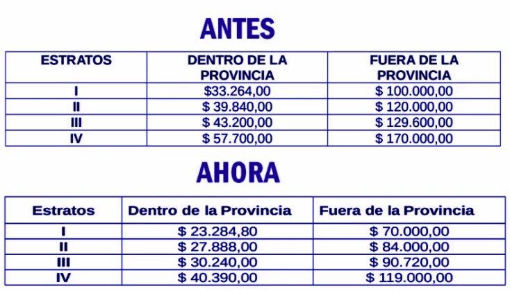 Estrato I: $23.284,80 (dentro de la provincia) /$70.000 (fuera de la provincia)