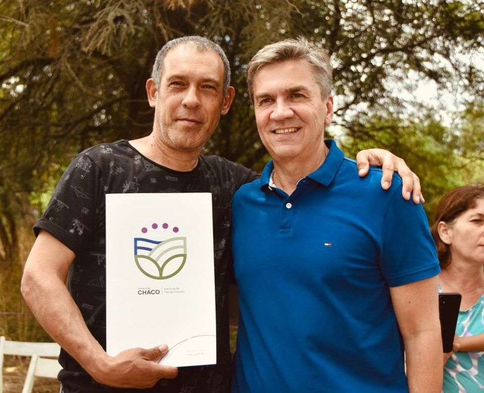 Este sábado, en Presidencia Roque Sáenz Peña, el gobernador Leandro Zdero encabezó la entrega de títulos de propiedad y adjudicaciones de tierras fiscales a productores. Algunos, esperaron hasta 40 años para llegar a este día”.