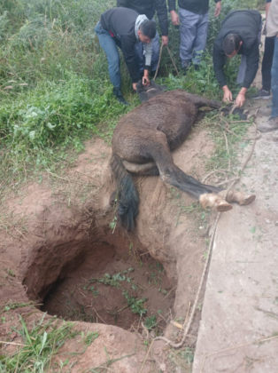 El hecho ocurrió alrededor de las 19:30, cuando vecinos alertaron a las autoridades sobre la presencia del equino atrapado. Al llegar al lugar, los efectivos constataron que el potrillo se encontraba dentro de un pozo de aproximadamente un metro y medio de profundidad, sin agua en su interior.